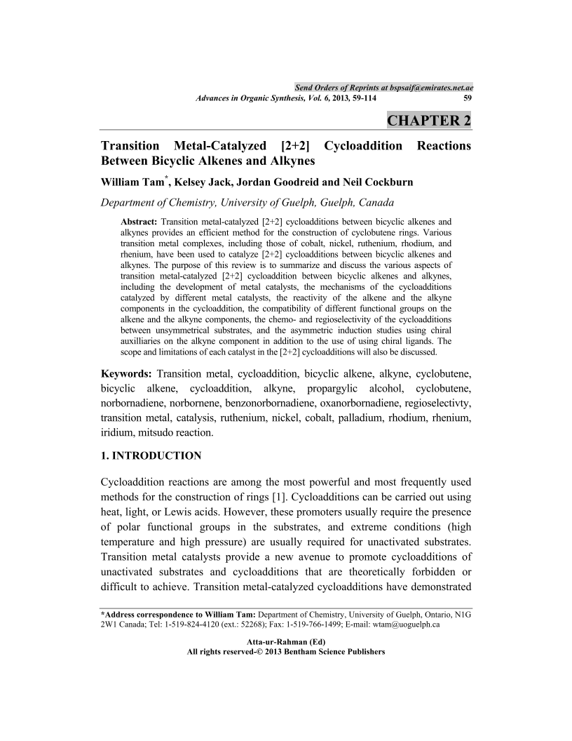 Transition Metal-Catalyzed [2+2] Cycloaddition Reactions Between Bicyclic Alkenes and Alkynes, Page 1 of 1