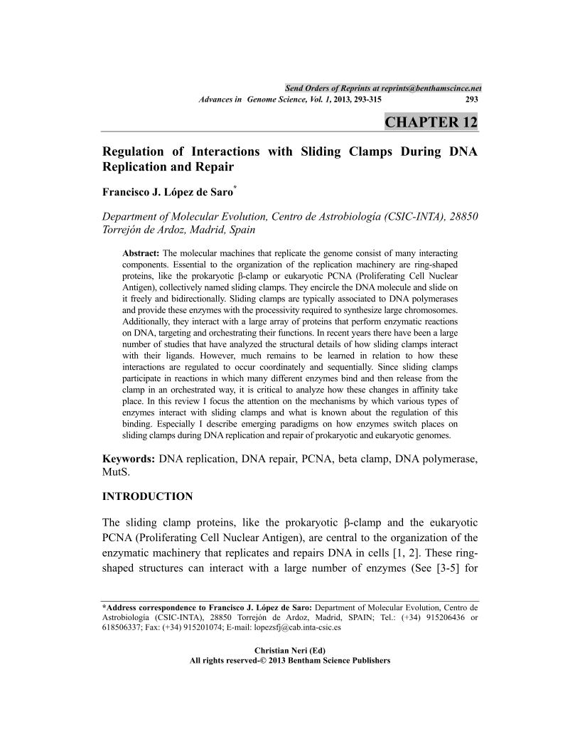 Regulation of Interactions with Sliding Clamps During DNA Replication and Repair, Page 1 of 1