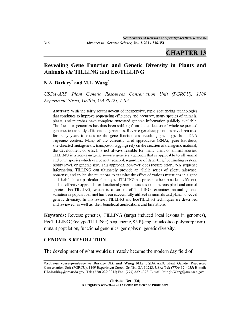 Revealing Gene Function and Genetic Diversity in Plants and Animals via TILLING and EcoTILLING, Page 1 of 1