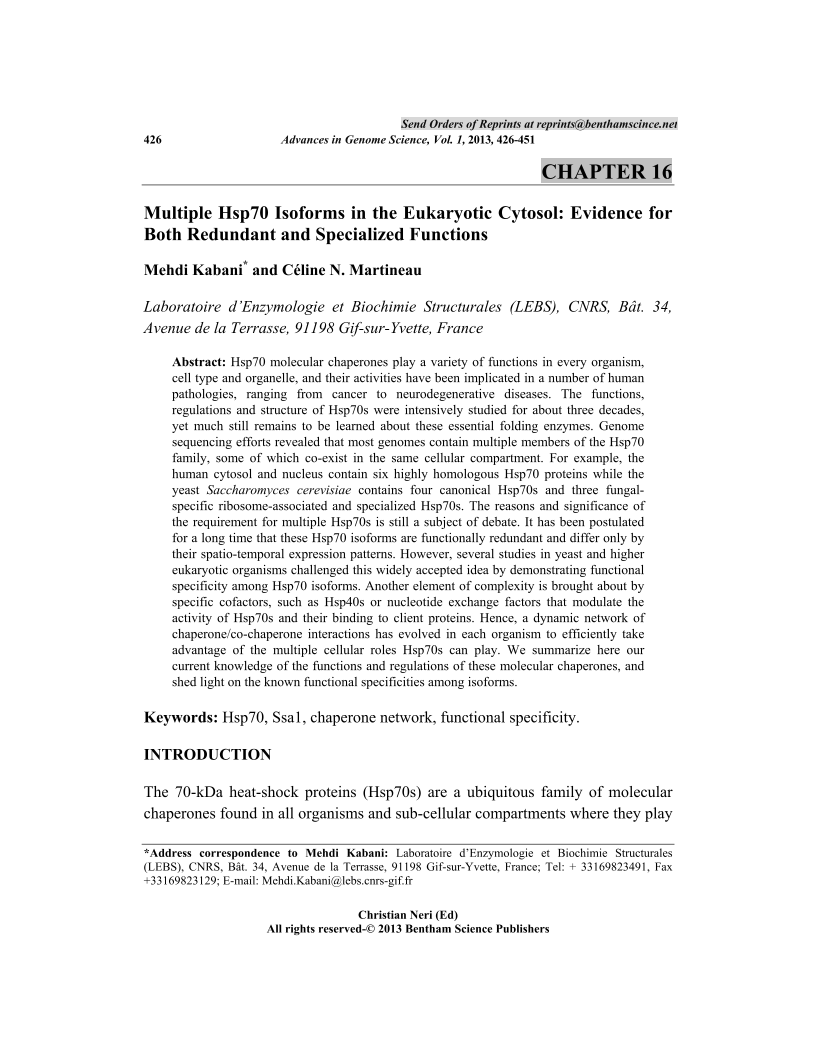 Multiple Hsp70 Isoforms in the Eukaryotic Cytosol: Evidence for Both Redundant and Specialized Functions, Page 1 of 1