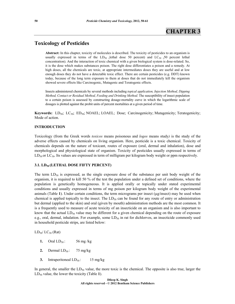 - Source: Toxicology: Agriculture and Environment Pesticide Chemistry and Toxicology , pp 50-61