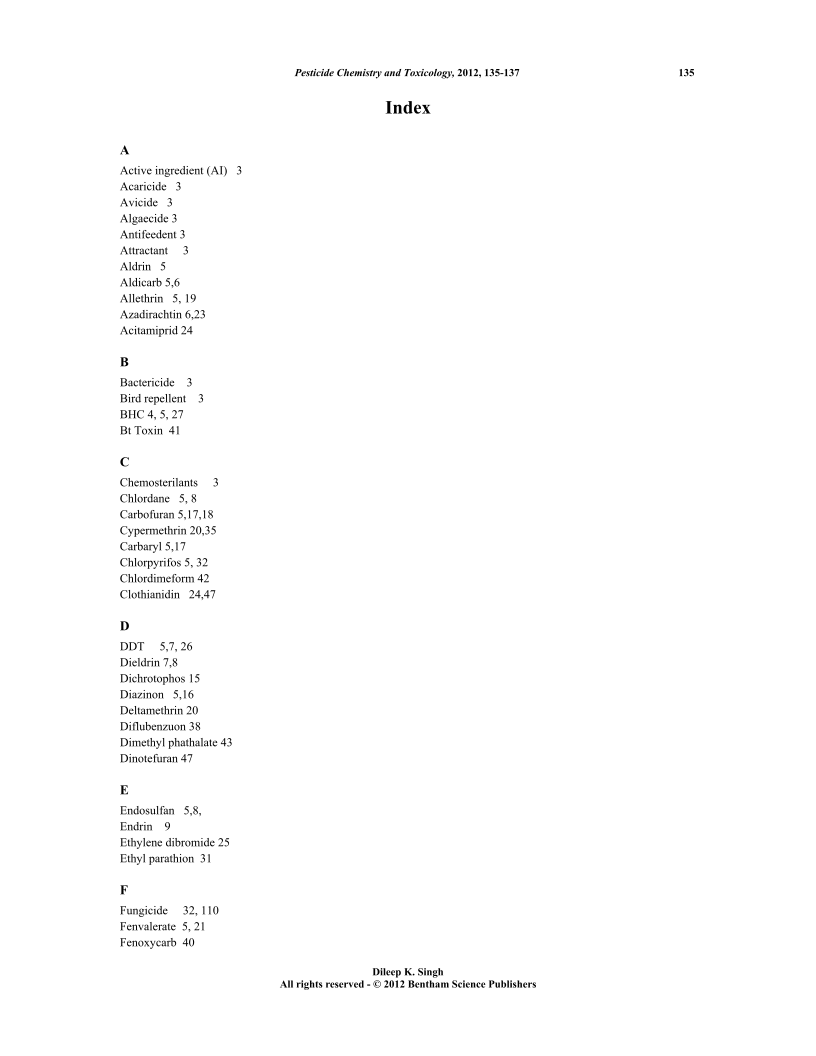 - Source: Toxicology: Agriculture and Environment Pesticide Chemistry and Toxicology , pp 135-137