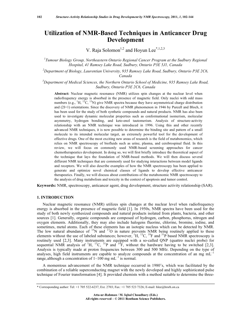 Utilization of NMR-Based Techniques in Anticancer Drug Development, Page 1 of 1