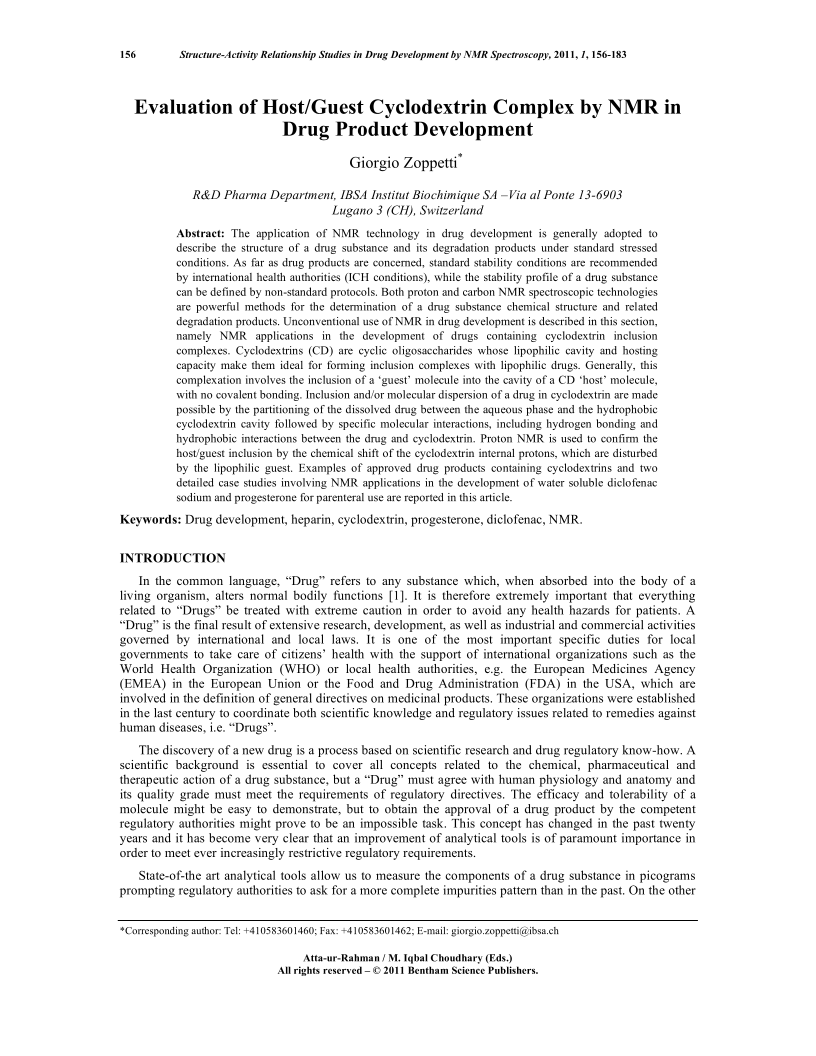 Evaluation of Host/Guest Cyclodextrin Complex by NMR in Drug Product Development, Page 1 of 1