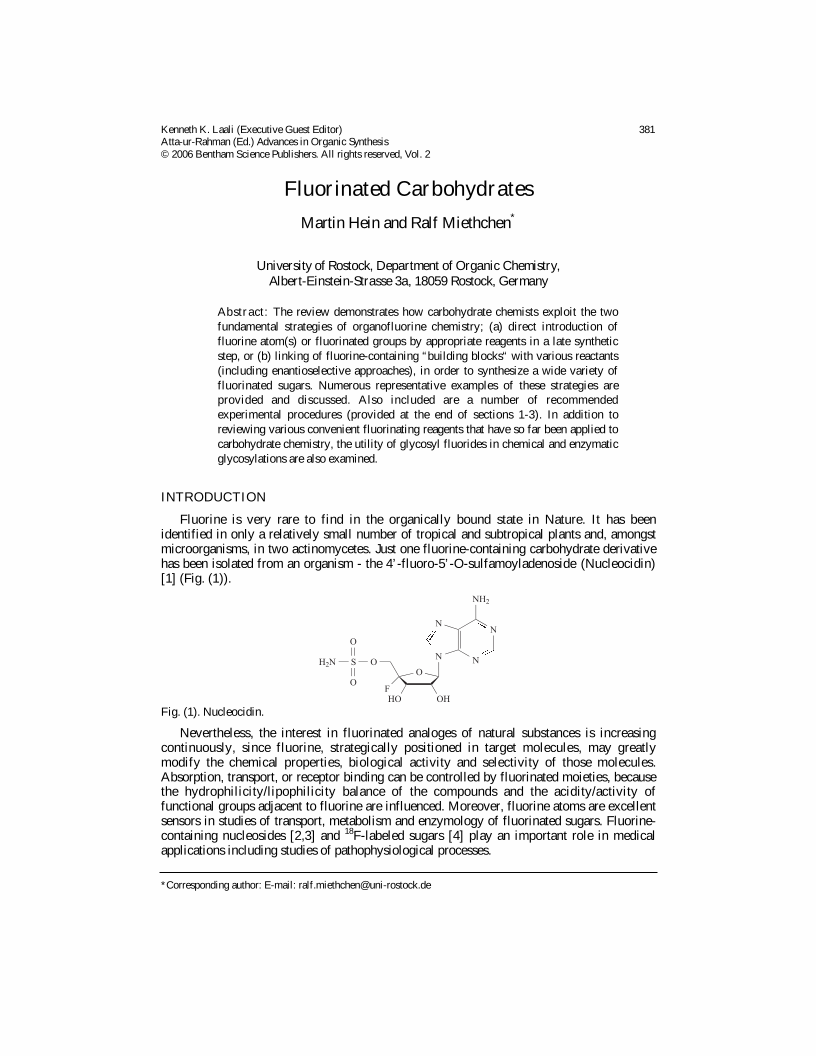 Fluorinated Carbohydrates, Page 1 of 1