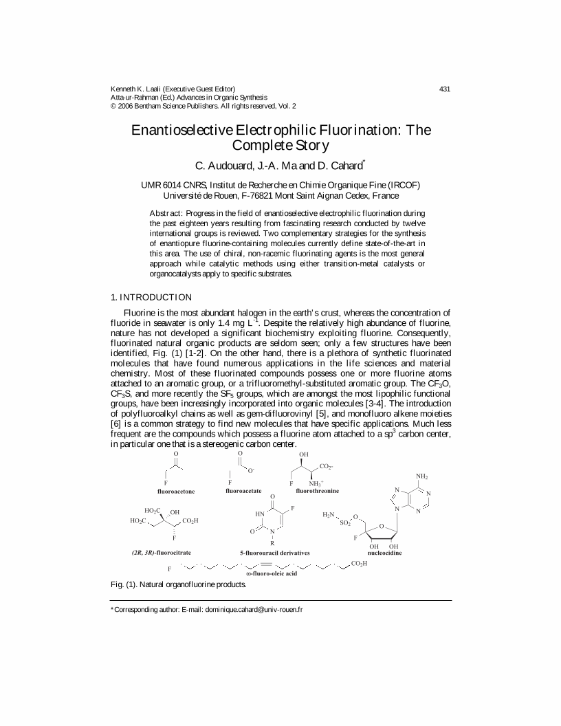 Enantioselective Electrophilic Fluorination: The Complete Story, Page 1 of 1