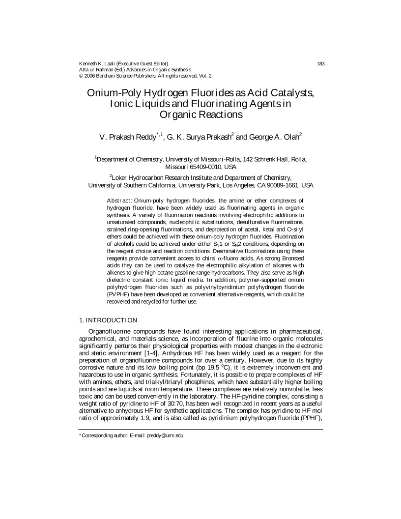 - Authors: V. Prakash Reddy, G. K. Surya Prakash and George A. Olah