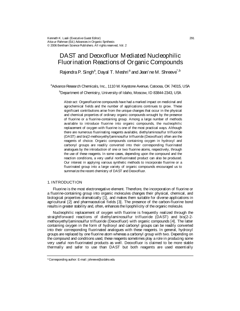 DAST and Deoxofluor Mediated Nucleophilic Fluorination Reactions of Organic Compounds, Page 1 of 1