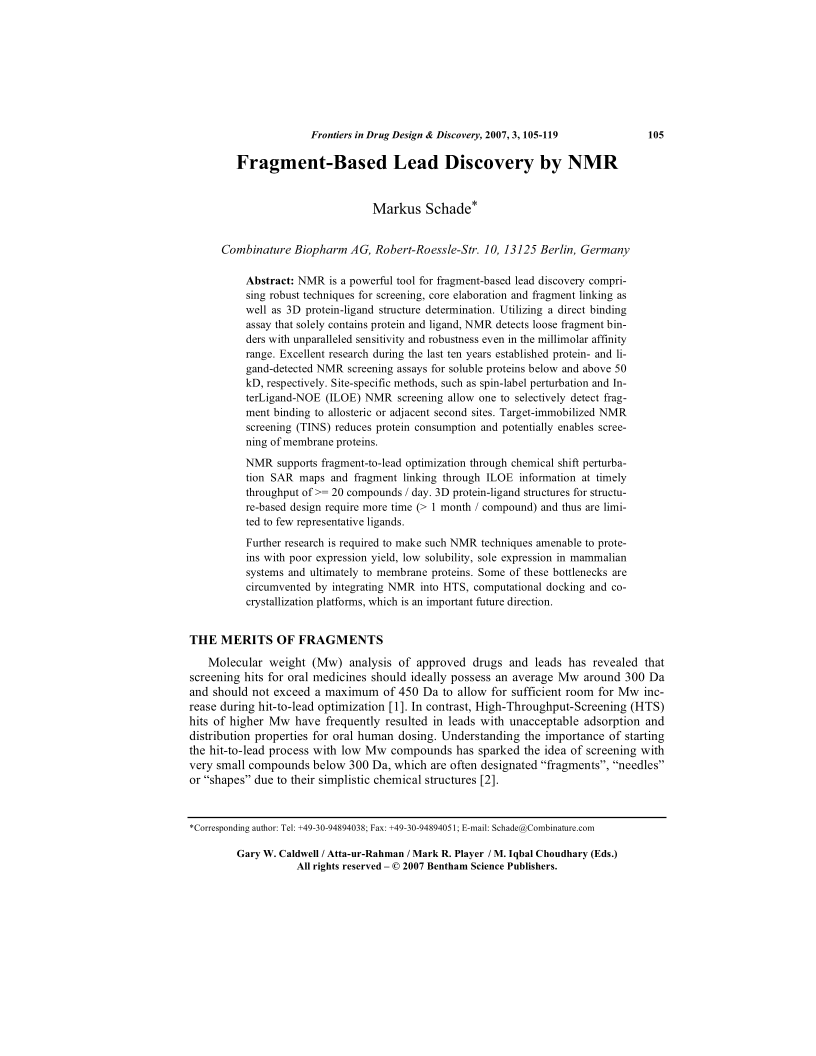 Fragment-Based Lead Discovery by NMR, Page 1 of 1