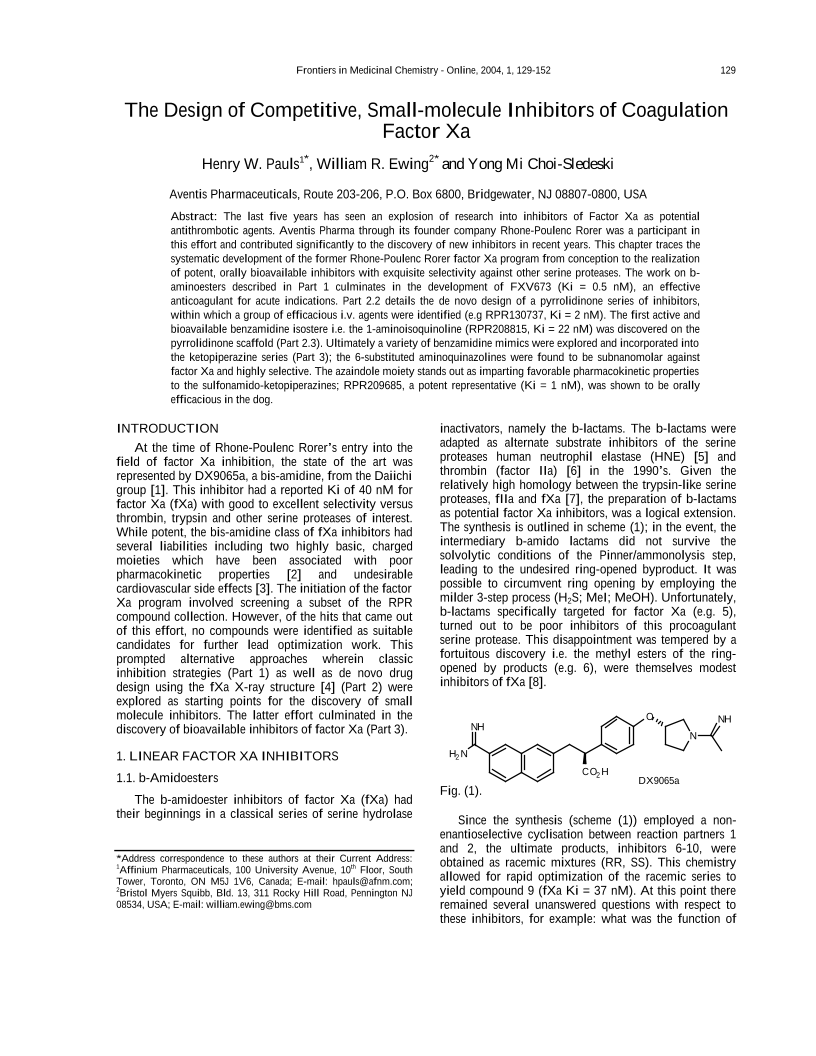 The Design of Competitive, Small-molecule Inhibitors of Coagulation Factor Xa, Page 1 of 1