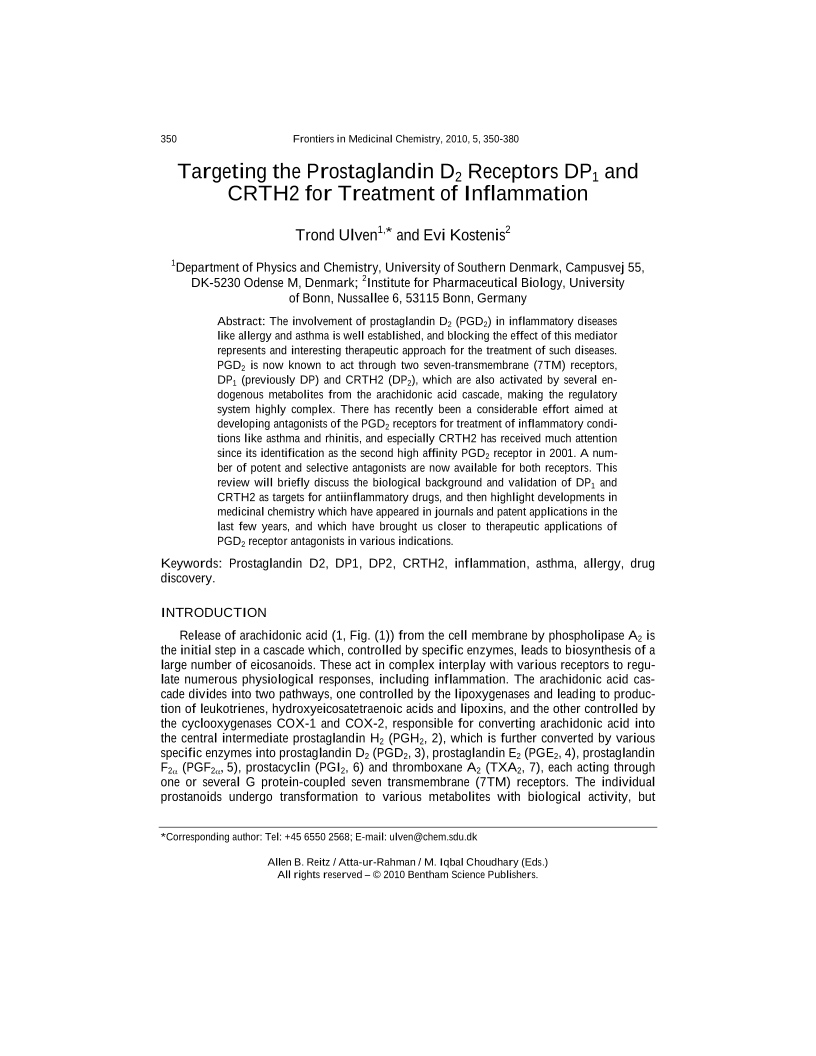 Targeting the Prostaglandin D2 Receptors DP1 and CRTH2 for Treatment of Inflammation, Page 1 of 1