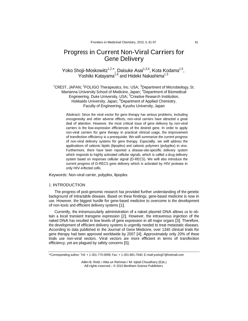 Progress in Current Non-Viral Carriers for Gene Delivery, Page 1 of 1