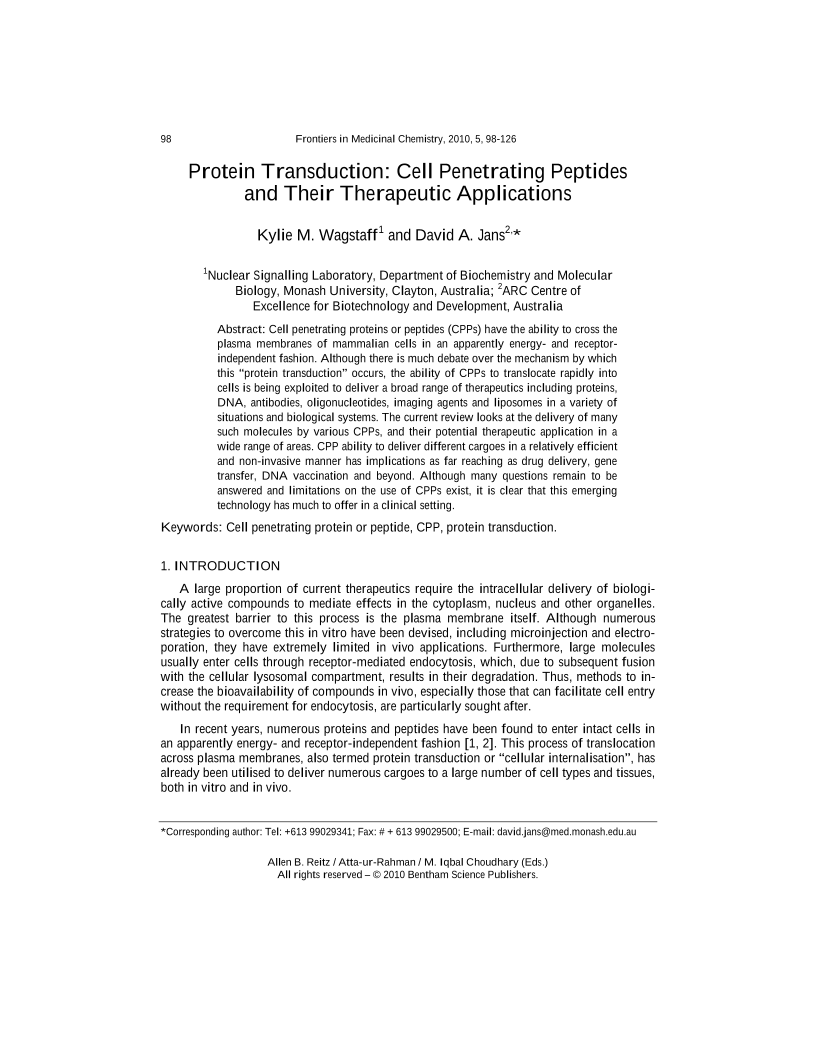 Protein Transduction: Cell Penetrating Peptides and Their Therapeutic Applications, Page 1 of 1