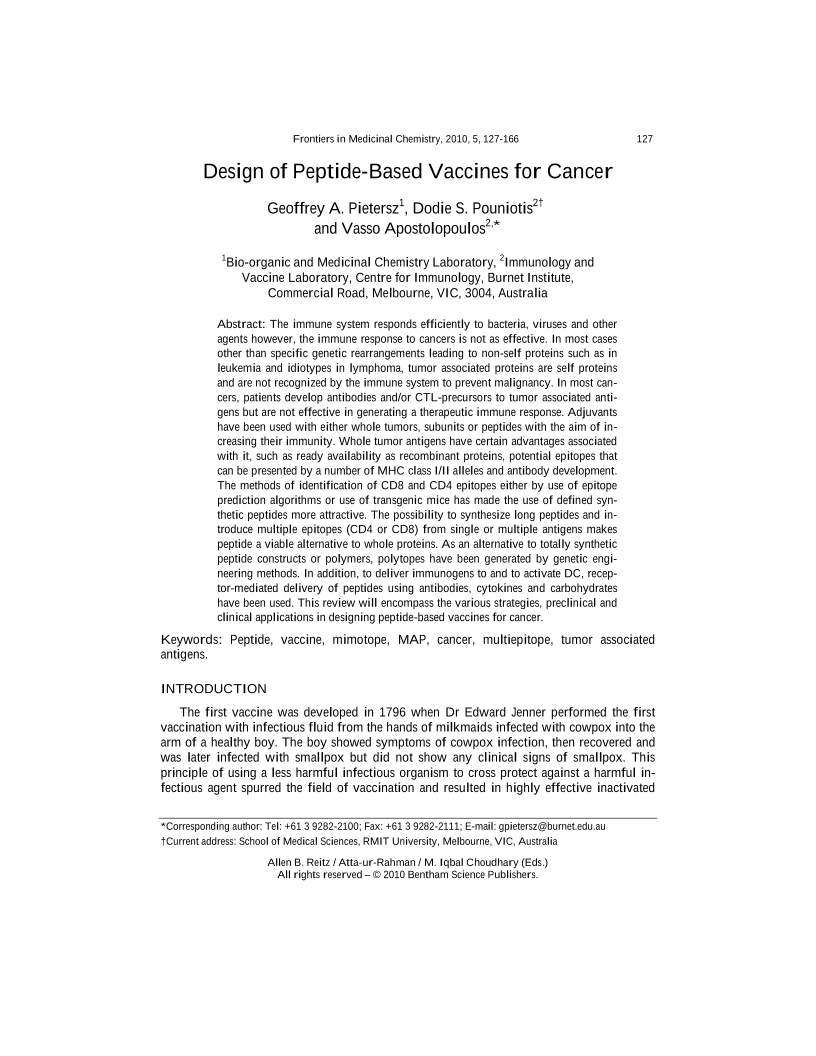 Design of Peptide-Based Vaccines for Cancer, Page 1 of 1