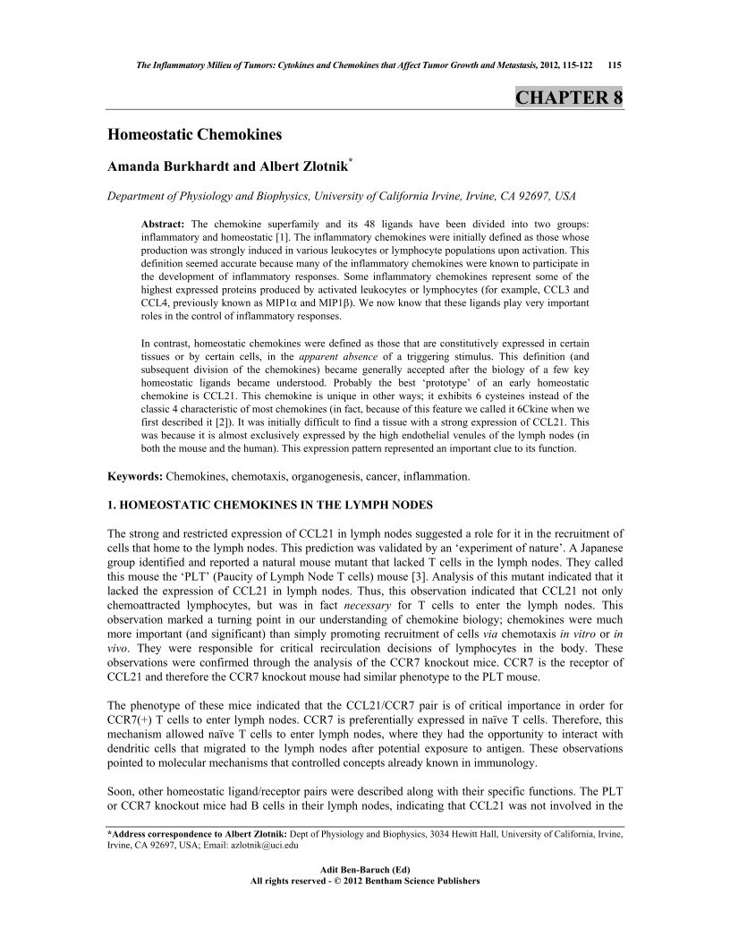 In contrast, homeostatic chemokines were defined as those that are constitutively expressed in certain tissues or by certain cells, in the apparent absence of a triggering stimulus. This definition (and subsequent division of the chemokines) became generally accepted after the biology of a few key homeostatic ligands became understood. Probably the best prototype of an early homeostatic chemokine is CCL21. This chemokine is unique in other ways; it exhibits 6 cysteines instead of the classic 4 characteristic of most chemokines (in fact, because of this feature we called it 6Ckine when we first described it [2]). It was initially difficult to find a tissue with a strong expression of CCL21. This was because it is almost exclusively expressed by the high endothelial venules of the lymph nodes (in both the mouse and the human). This expression pattern represented an important clue to its function.