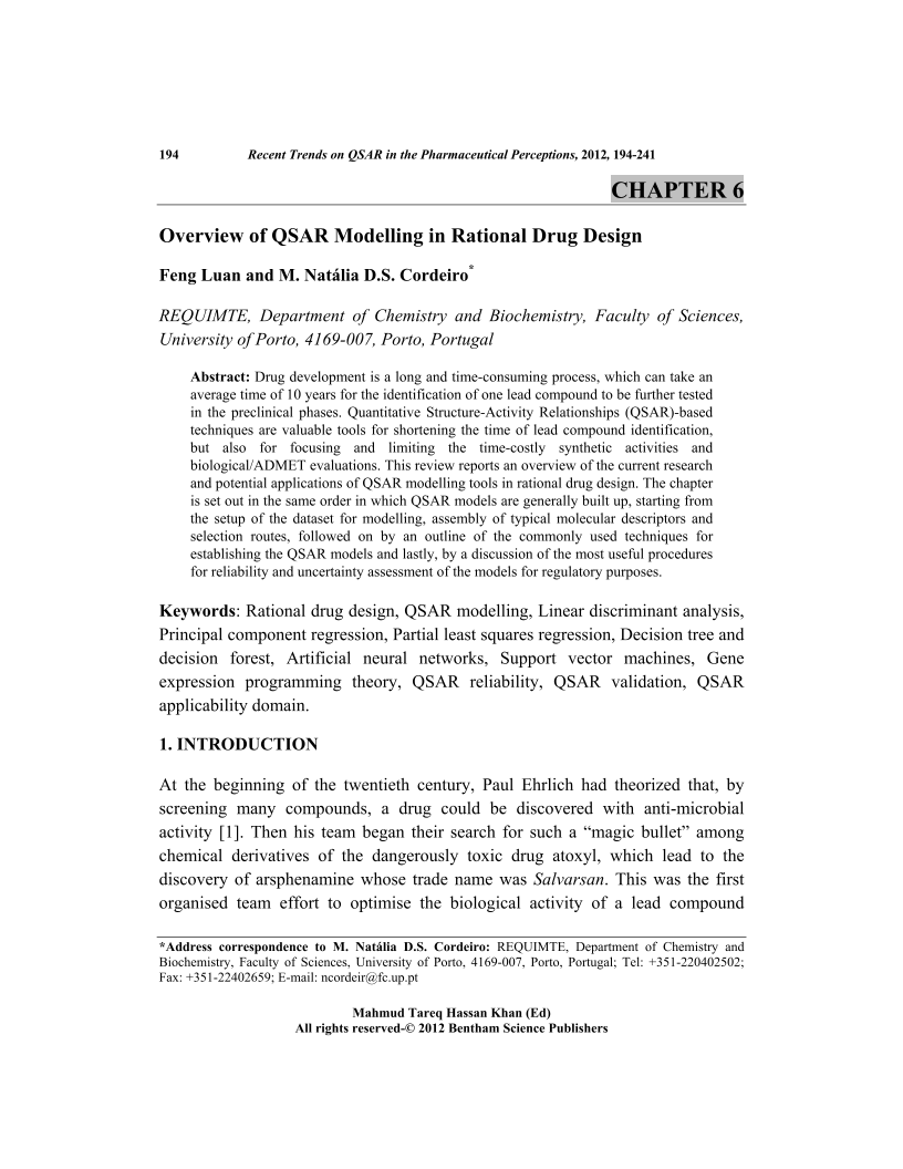 - Source: Recent Trends on QSAR in the Pharmaceutical Perceptions , pp 194-241
