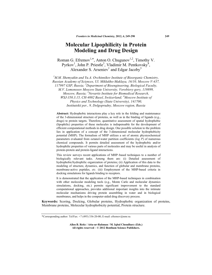 Molecular Lipophilicity in Protein Modeling and Drug Design, Page 1 of 1