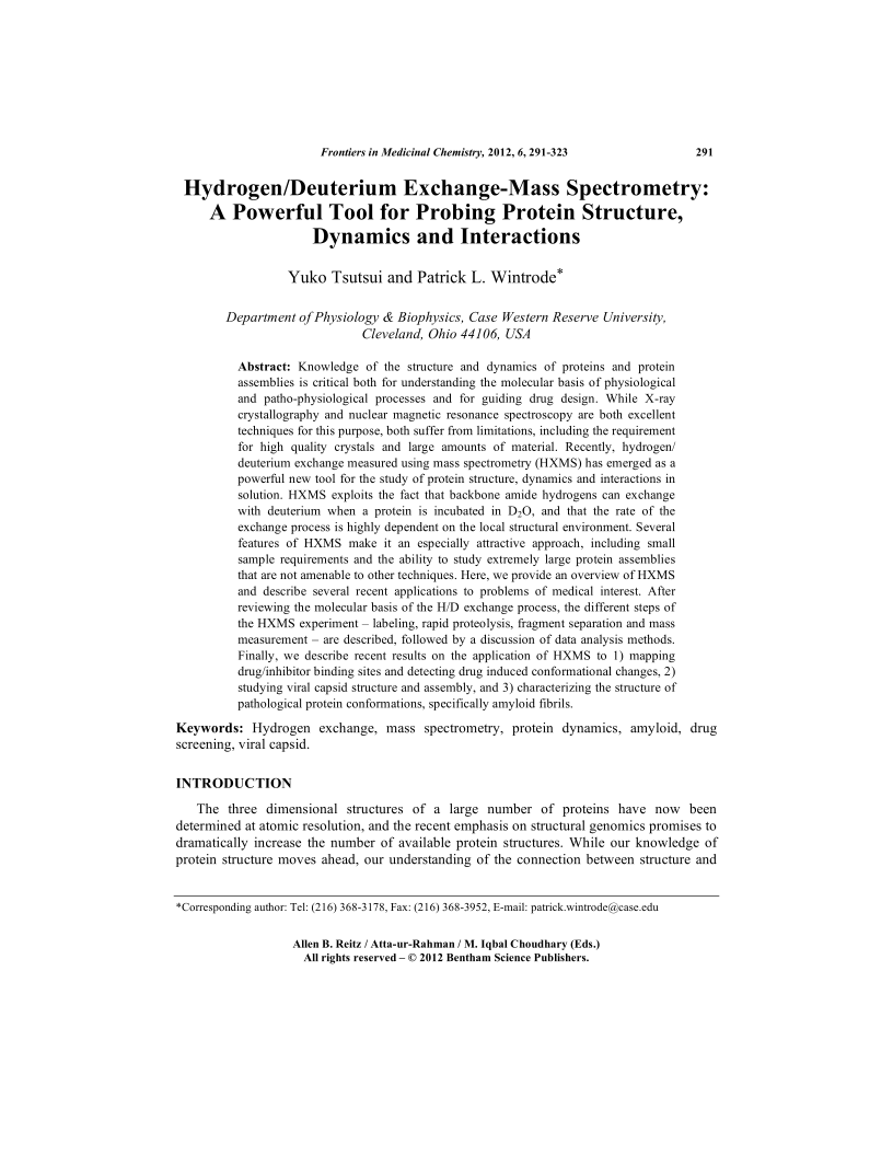 Hydrogen/Deuterium Exchange-Mass Spectrometry: A Powerful Tool for Probing Protein Structure, Dynamics and Interactions, Page 1 of 1