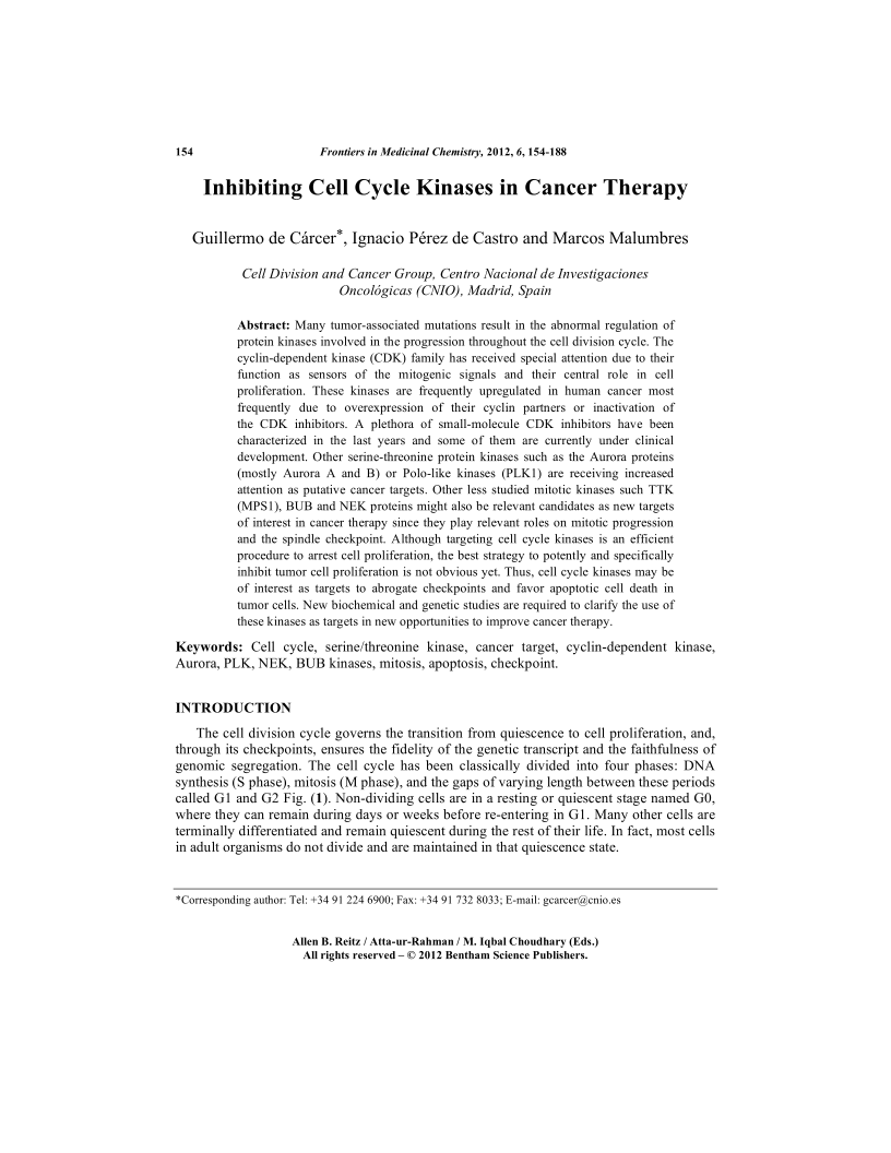 Inhibiting Cell Cycle Kinases in Cancer Therapy, Page 1 of 1