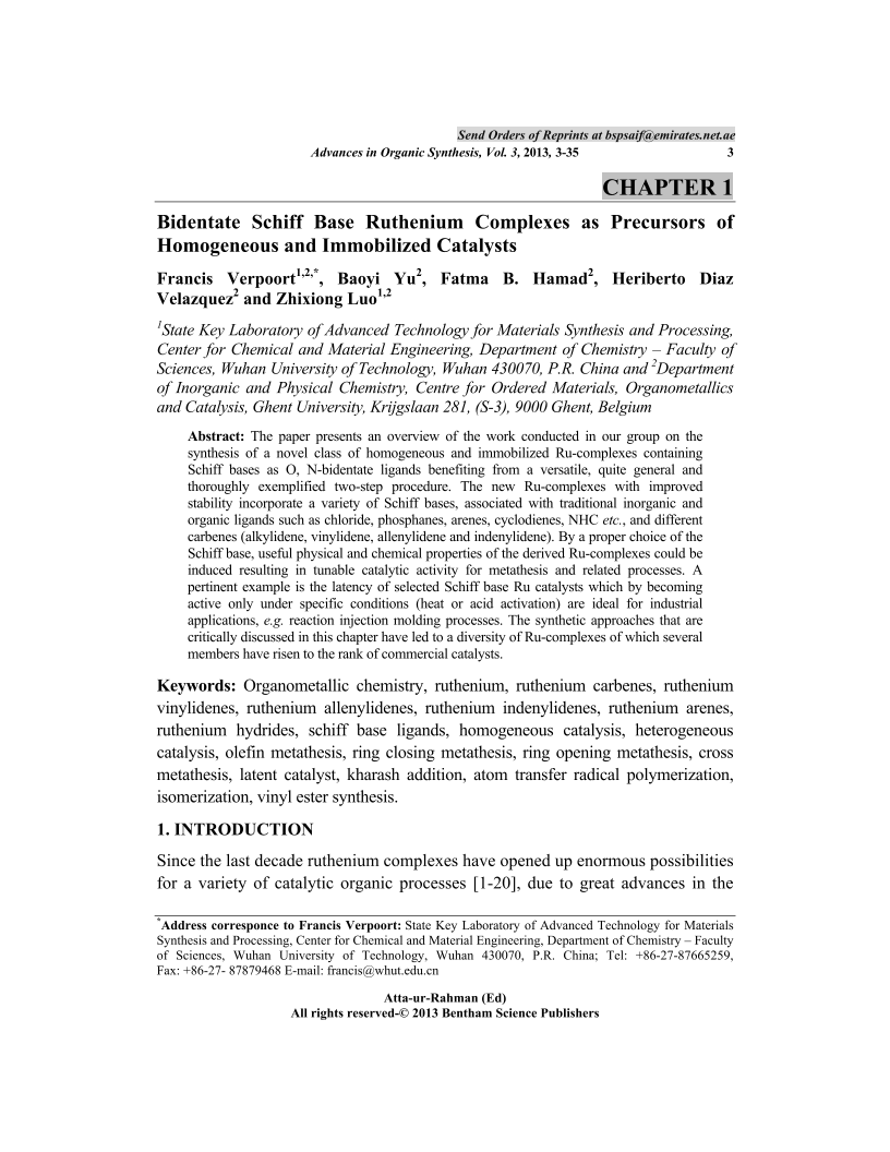 - Authors: Francis Verpoort1, Baoyi Yu2, Fatma B. Hamad3, Heriberto Diaz Velazquez4, Zhixiong Luo5