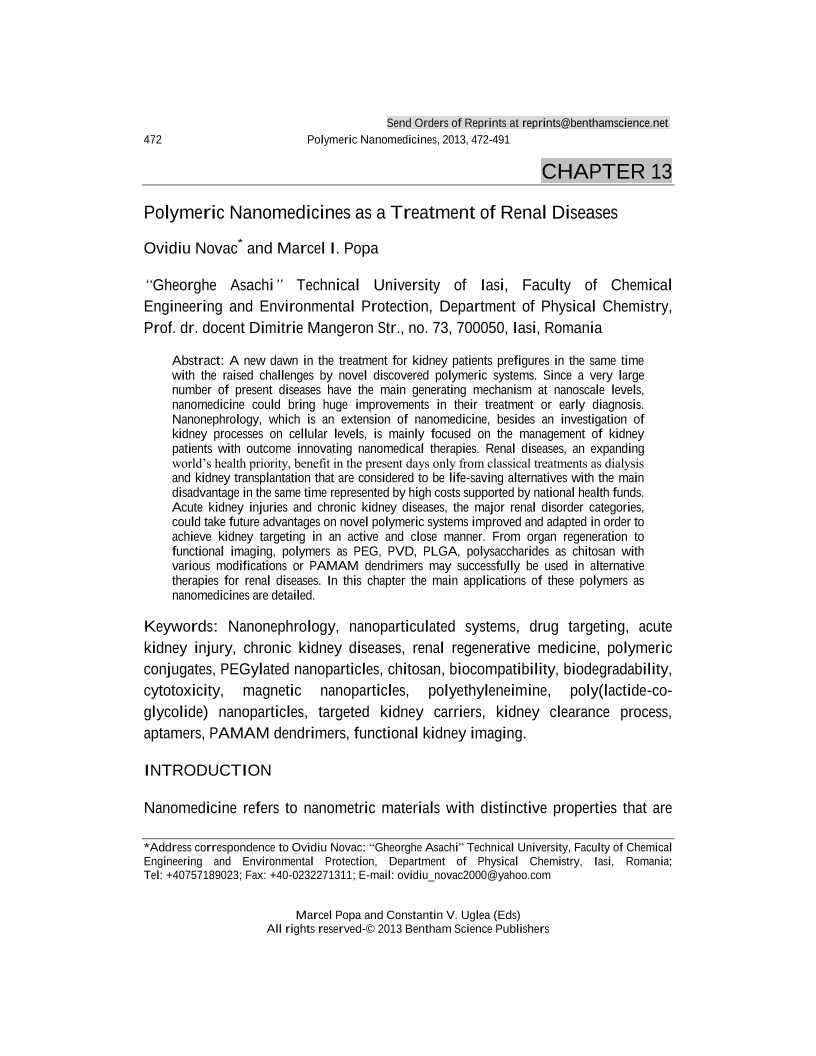 Polymeric Nanomedicines as a Treatment of Renal Diseases, Page 1 of 1