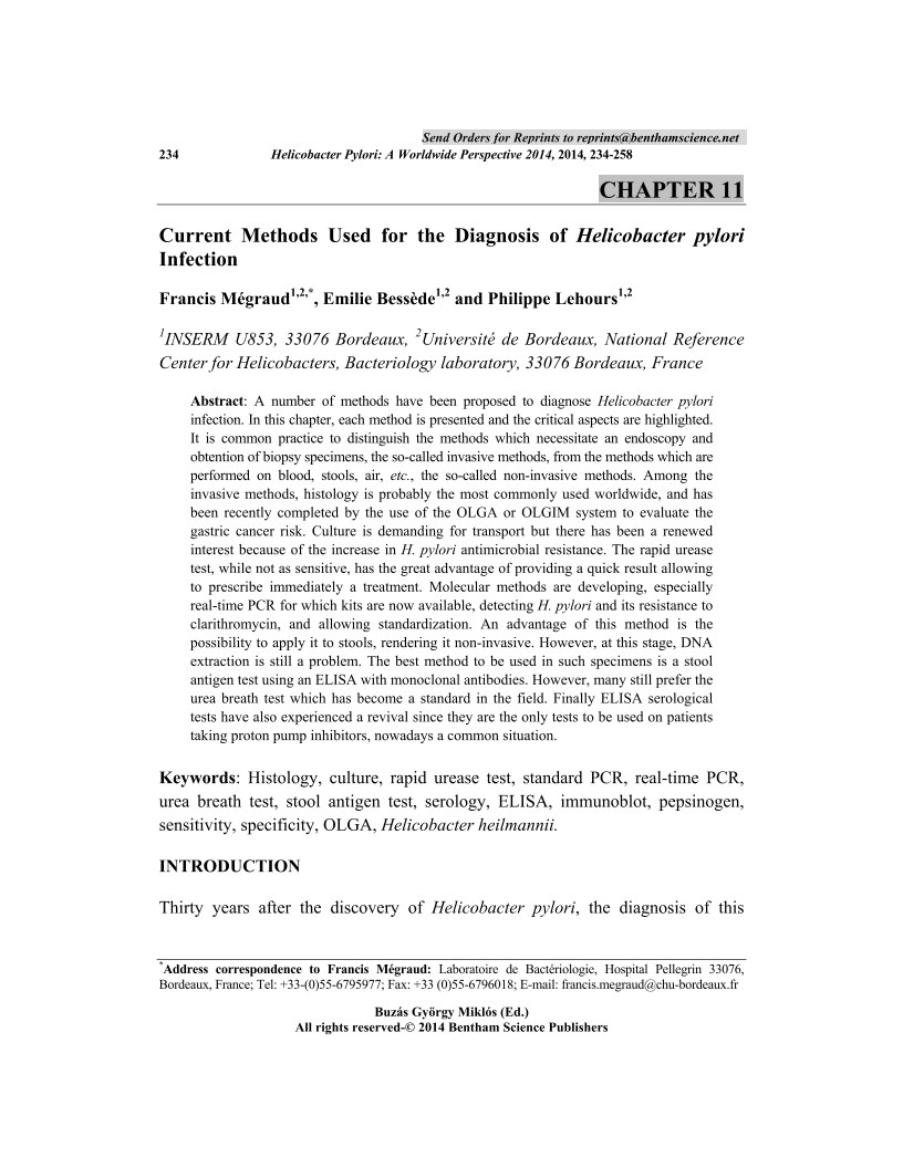 - Authors: Francis Mégraud, Emilie Bessède, Philippe Lehours3