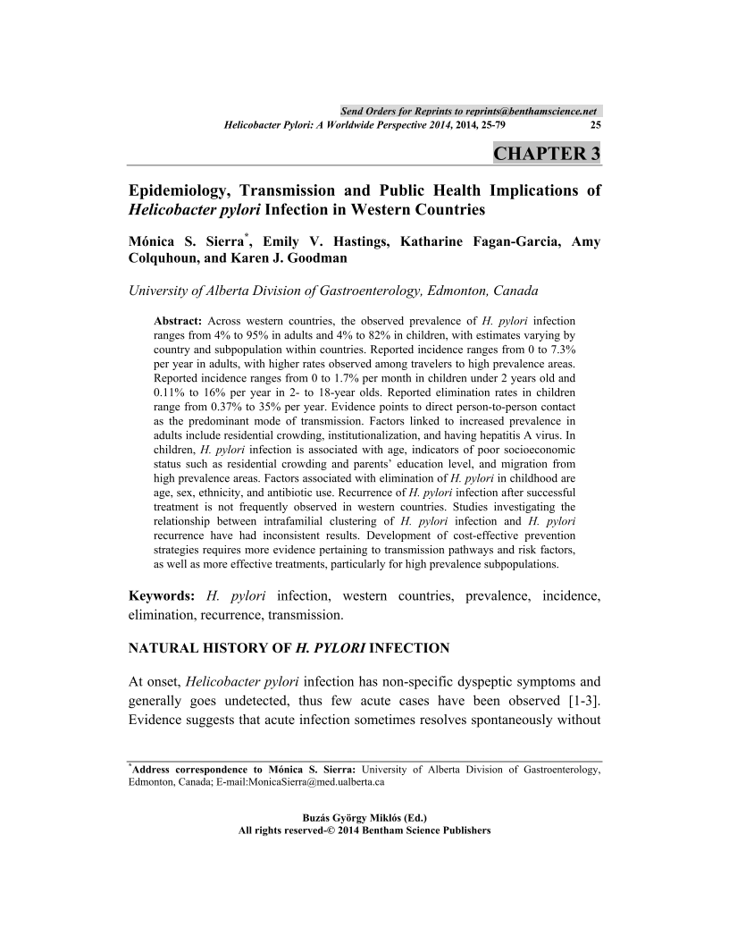 Epidemiology, Transmission and Public Health Implications of Helicobacter pylori Infection in Western Countries, Page 1 of 1