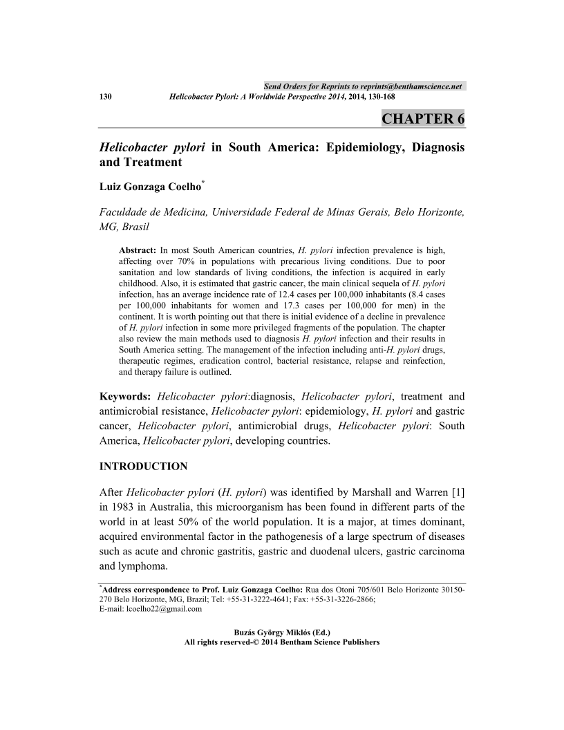 Helicobacter pylori in South America: Epidemiology, Diagnosis and Treatment, Page 1 of 1
