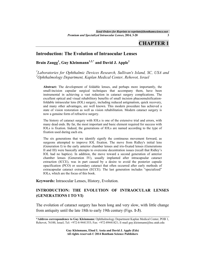 Introduction: The Evolution of Intraocular Lenses, Page 1 of 1