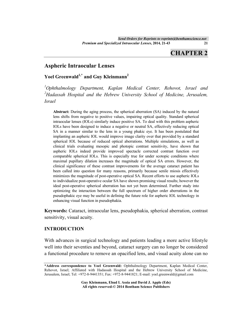 Aspheric Intraocular Lenses, Page 1 of 1