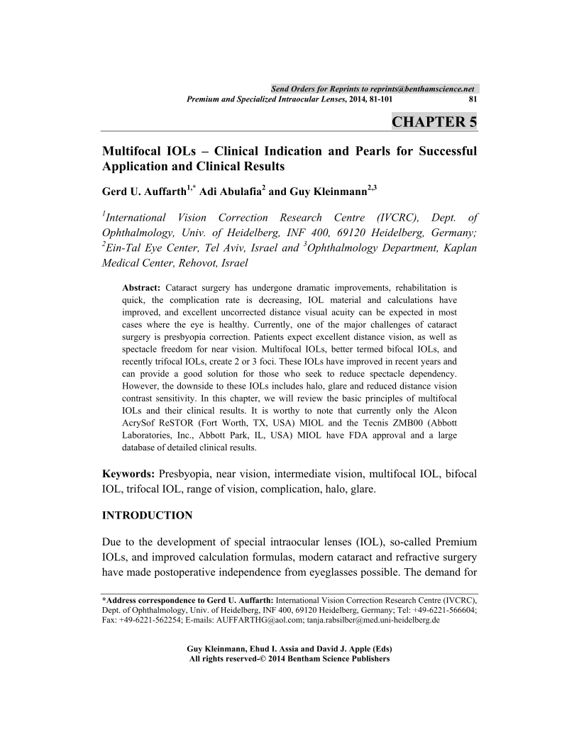 - Authors: Gerd U. Auffarth, Adi Abulafia, Guy Kleinmann3