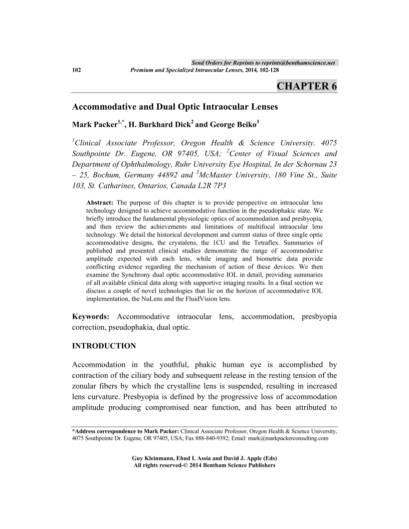 Accommodative and Dual Optic Intraocular Lenses, Page 1 of 1