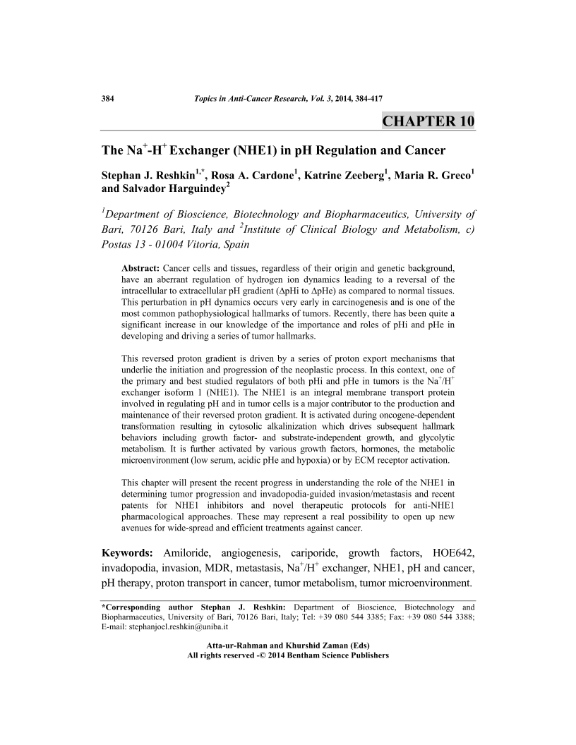 - Authors: Stephan J. Reshkin1, Rosa A. Cardone2, Katrine Zeeberg3, Maria R. Greco4, Salvador Harguindey5