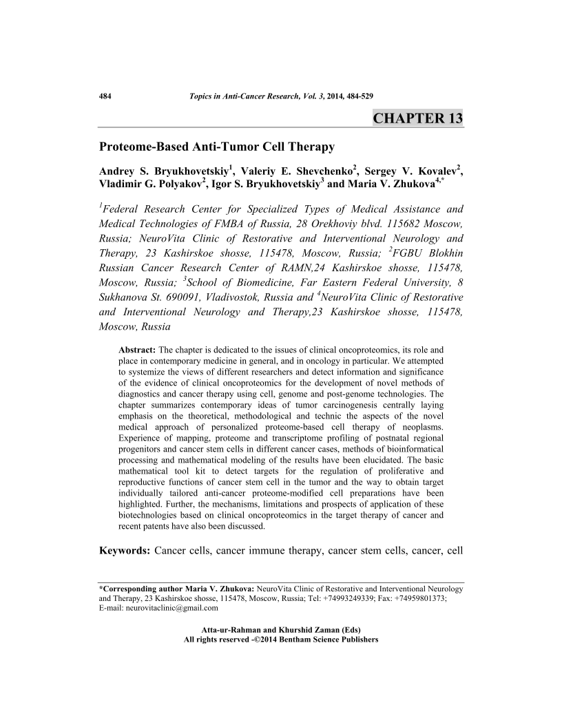 Proteome-Based Anti-Tumor Cell Therapy, Page 1 of 1