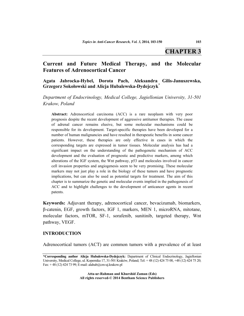 View Affiliations Hide Affiliations5 Department of Clinical Endocrinology, Jagiellonian University, Medical College, ul. Kopernika 17, 31-501 Kraków, Poland
