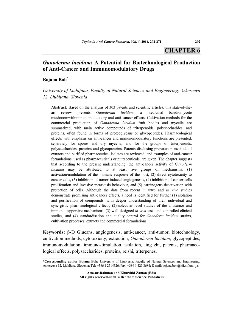 Ganoderma lucidum: A Potential for Biotechnological Production of Anti-Cancer and Immunomodulatory Drugs, Page 1 of 1