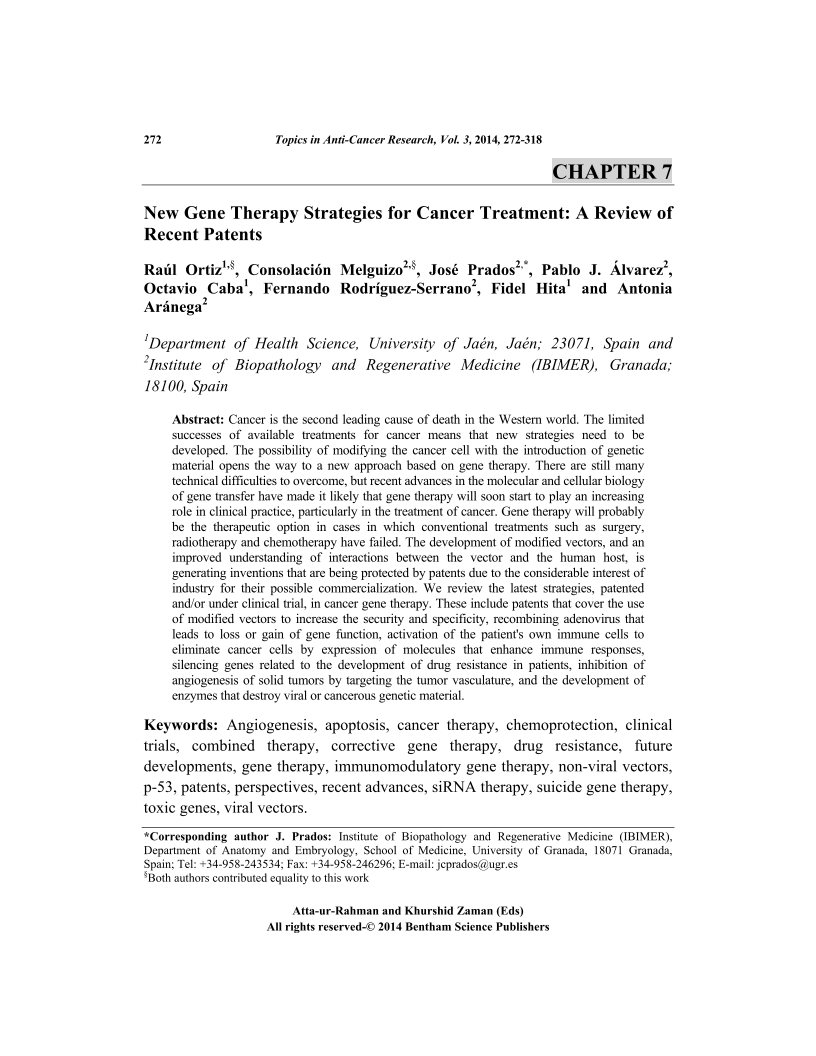 - Authors: Raúl Ortiz1, Consolación Melguizo2, José Prados3, Pablo J. Álvarez4, Octavio Caba5, Fernando Rodríguez Serrano6, Fidel Hita7, Antonia Aránega8