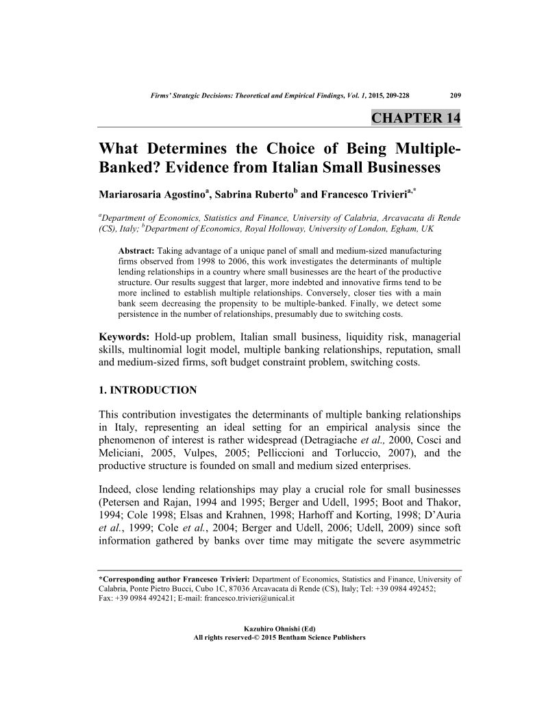 What Determines the Choice of Being Multiple- Banked? Evidence from Italian Small Businesses, Page 1 of 1