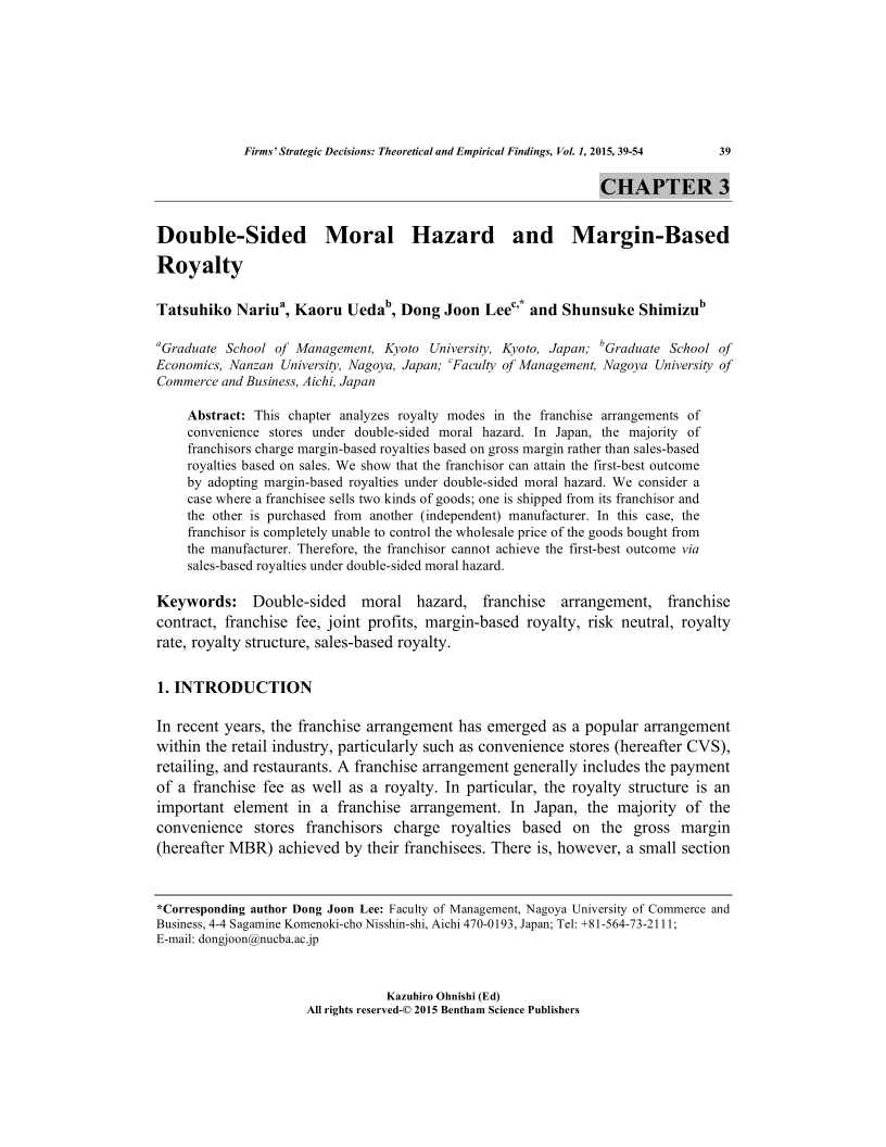 Double-Sided Moral Hazard and Margin-Based Royalty, Page 1 of 1