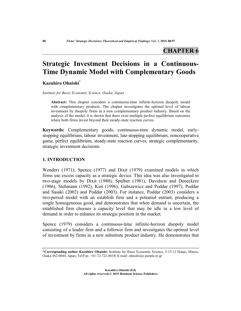 Strategic Investment Decisions in a Continuous- Time Dynamic Model with Complementary Goods, Page 1 of 1