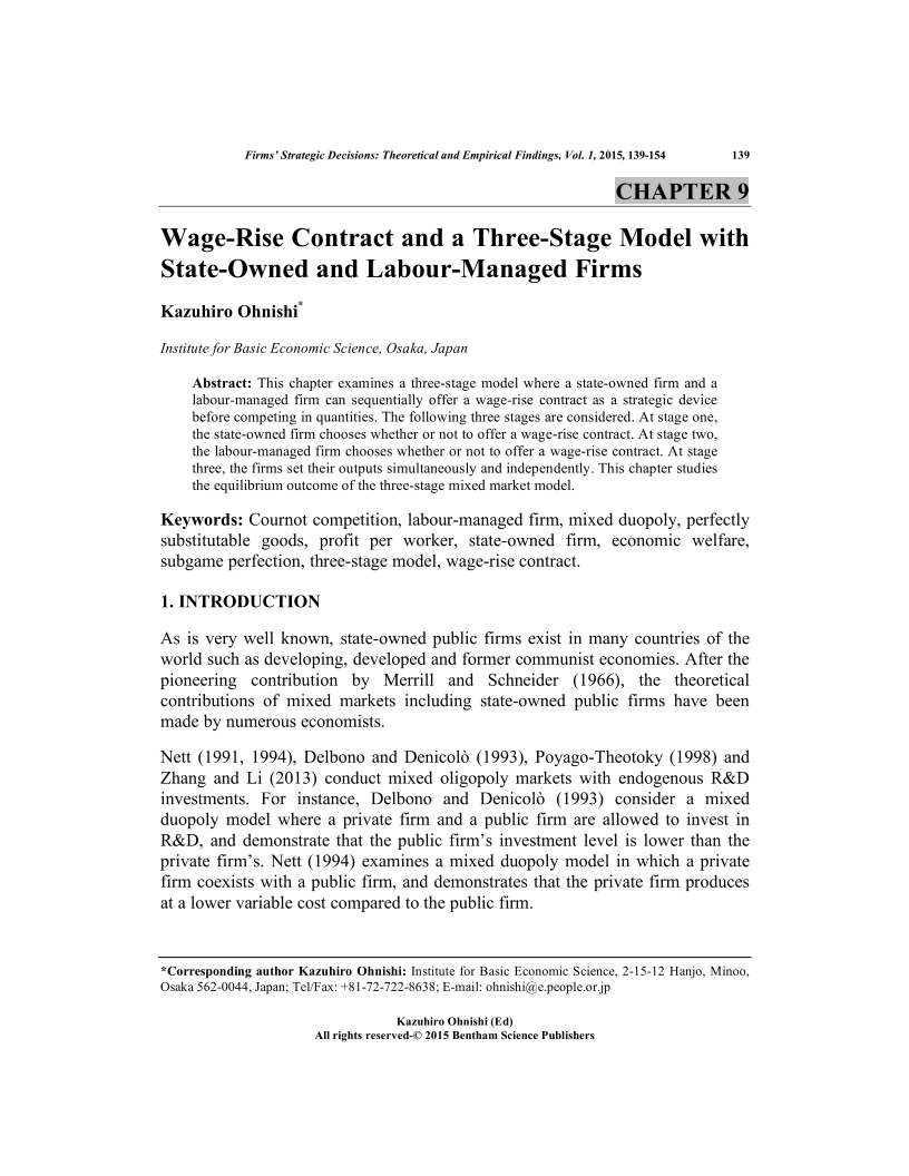 Wage-Rise Contract and a Three-Stage Model with State-Owned and Labour-Managed Firms, Page 1 of 1