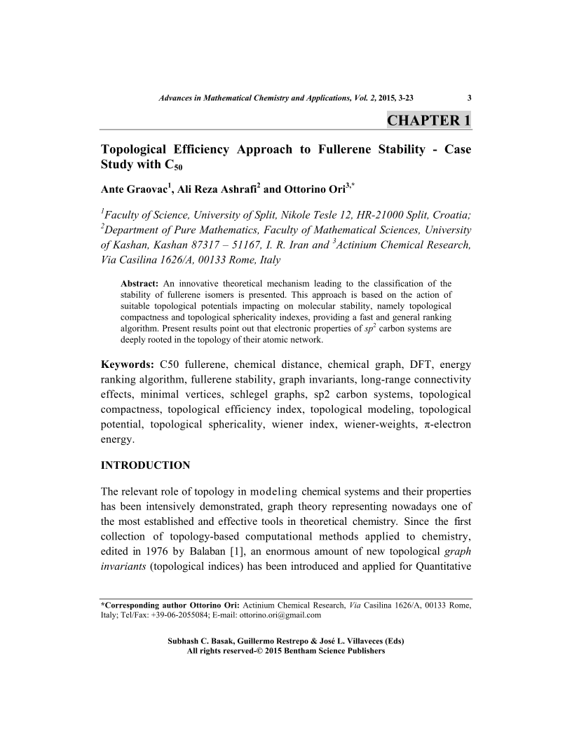 - Source: Advances in Mathematical Chemistry and Applications: Volume 2 , pp 3-23
