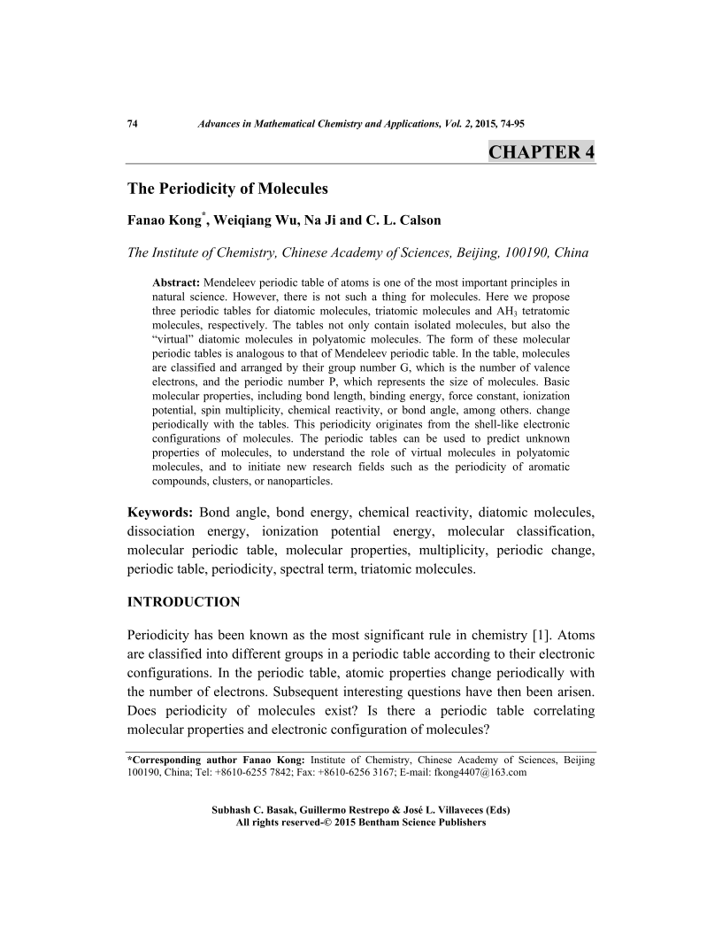 - Source: Advances in Mathematical Chemistry and Applications: Volume 2 , pp 74-95