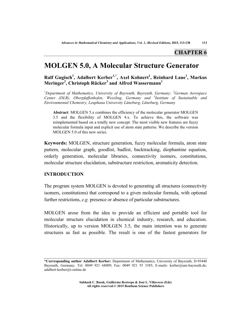 - Source: Advances in Mathematical Chemistry and Applications: Volume 1 Revised Edition , pp 113-138