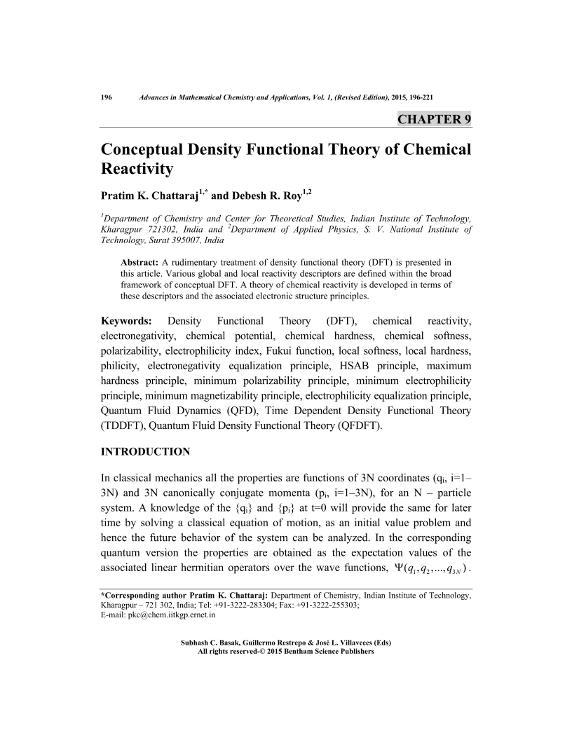 - Authors: Pratim K. Chattaraj1, Debesh R. Roy2
