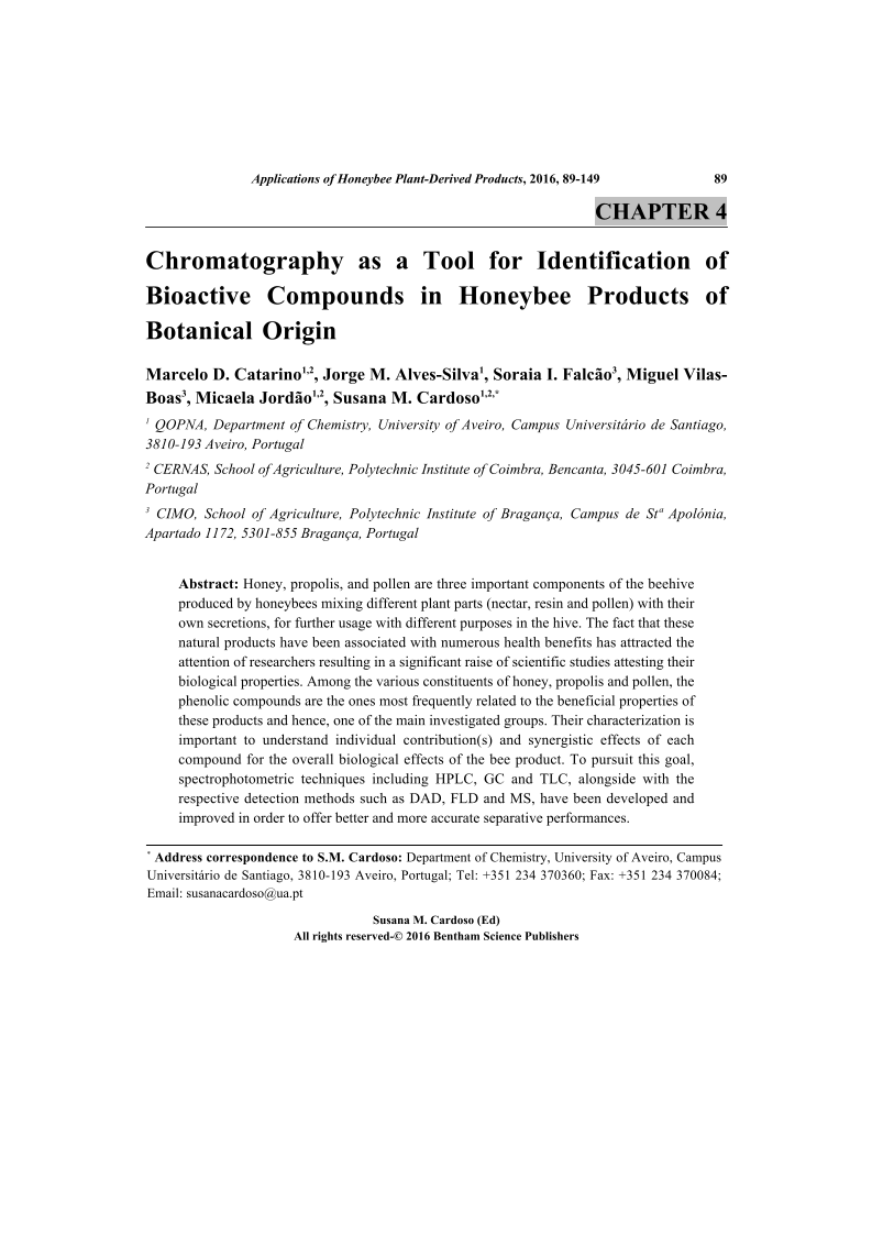 Chromatography as a Tool for Identification of Bioactive Compounds in Honeybee Products of Botanical Origin, Page 1 of 1