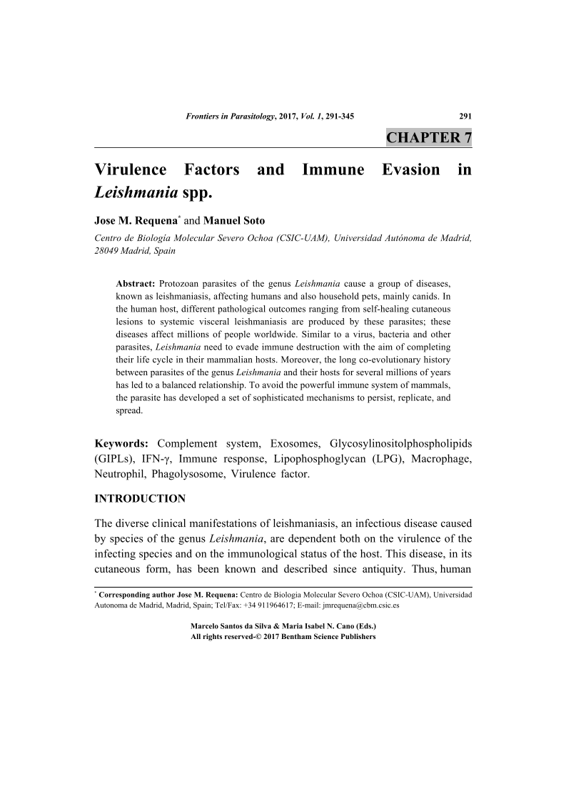 Virulence Factors and Immune Evasion in Leishmania spp., Page 1 of 1