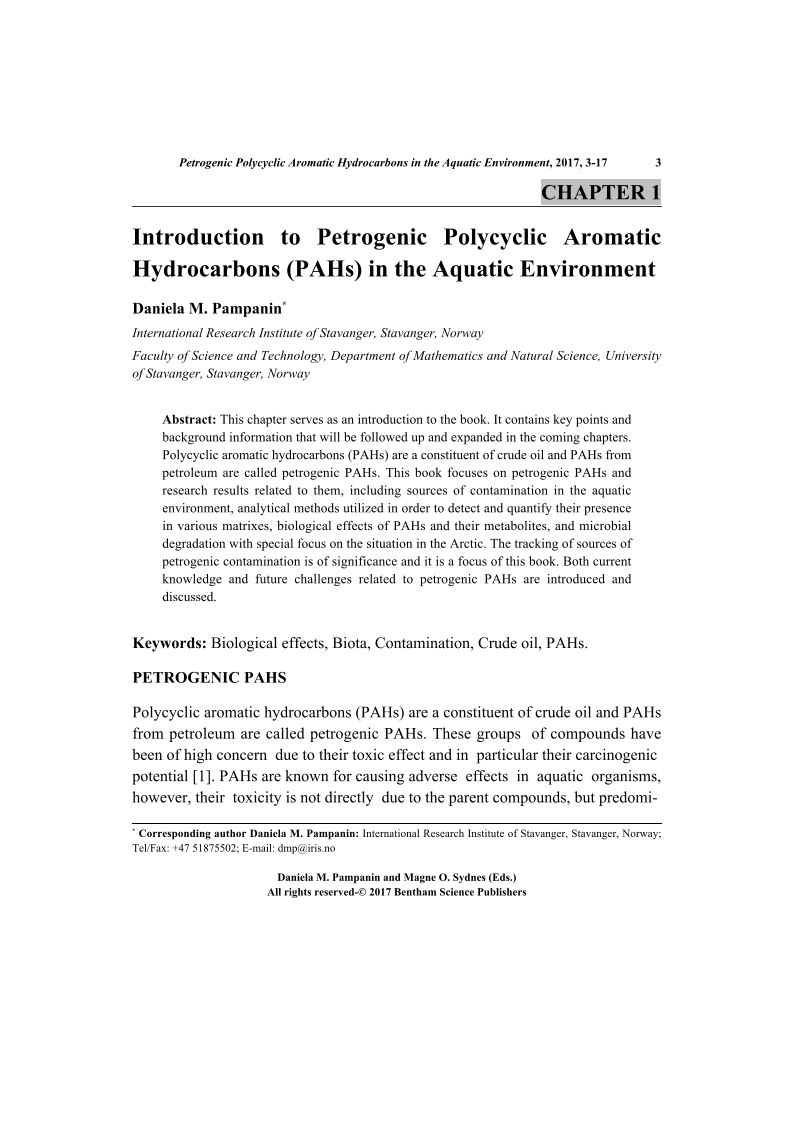 - Source: Petrogenic Polycyclic Aromatic Hydrocarbons in the Aquatic Environment: Analysis, Synthesis, Toxicity and Environmental Impact , pp 3-17