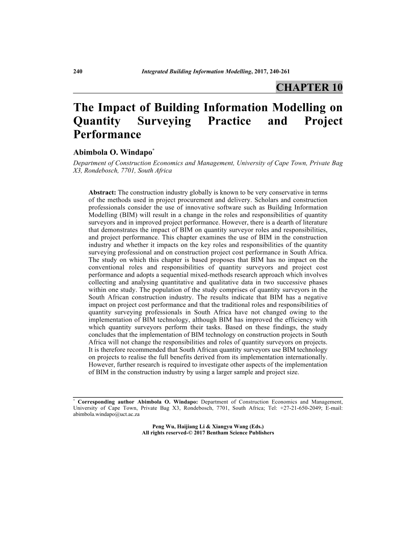 The Impact of Building Information Modelling on Quantity Surveying Practice and Project Performance, Page 1 of 1