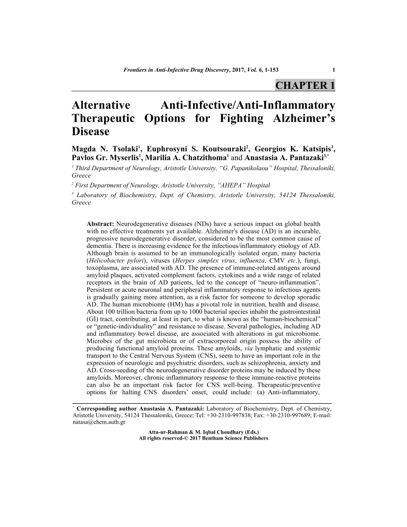 Alternative Anti-Infective/Anti-Inflammatory Therapeutic Options for Fighting Alzheimers Disease, Page 1 of 1